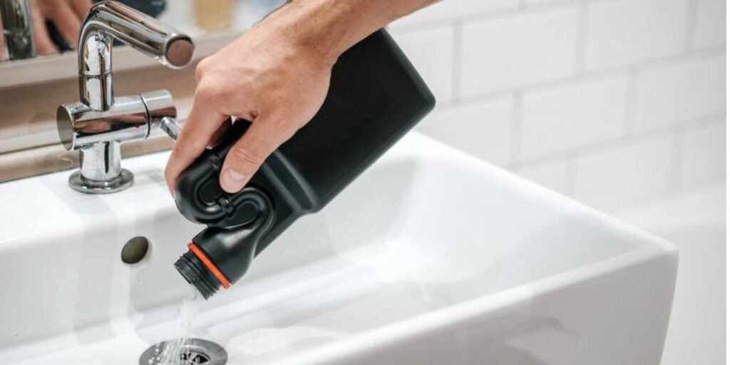 - Deja reposar durante 15 minutos y enjuaga con un litro de agua caliente para limpiar la cañería.